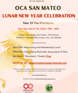 Established in 1987, OCA San Mateo Chapter is one of four chapters in the Bay Area and one of seven in California. OCA San Mateo unites and empowers the AANHPI community to collectively use our voice to advance the sociopolitical and holistic wellbeing of all AANHPI. We do this work through educating, organizing, and intergenerational bridge-building.